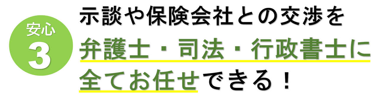 保険に関する書類や手続きなど、交通事故専門家が全面的にお手伝いさせて頂きます。また提携弁護士・司法・行政書士に相手側の保険会社との交渉、法律面でのトラブルなども相談することができます。