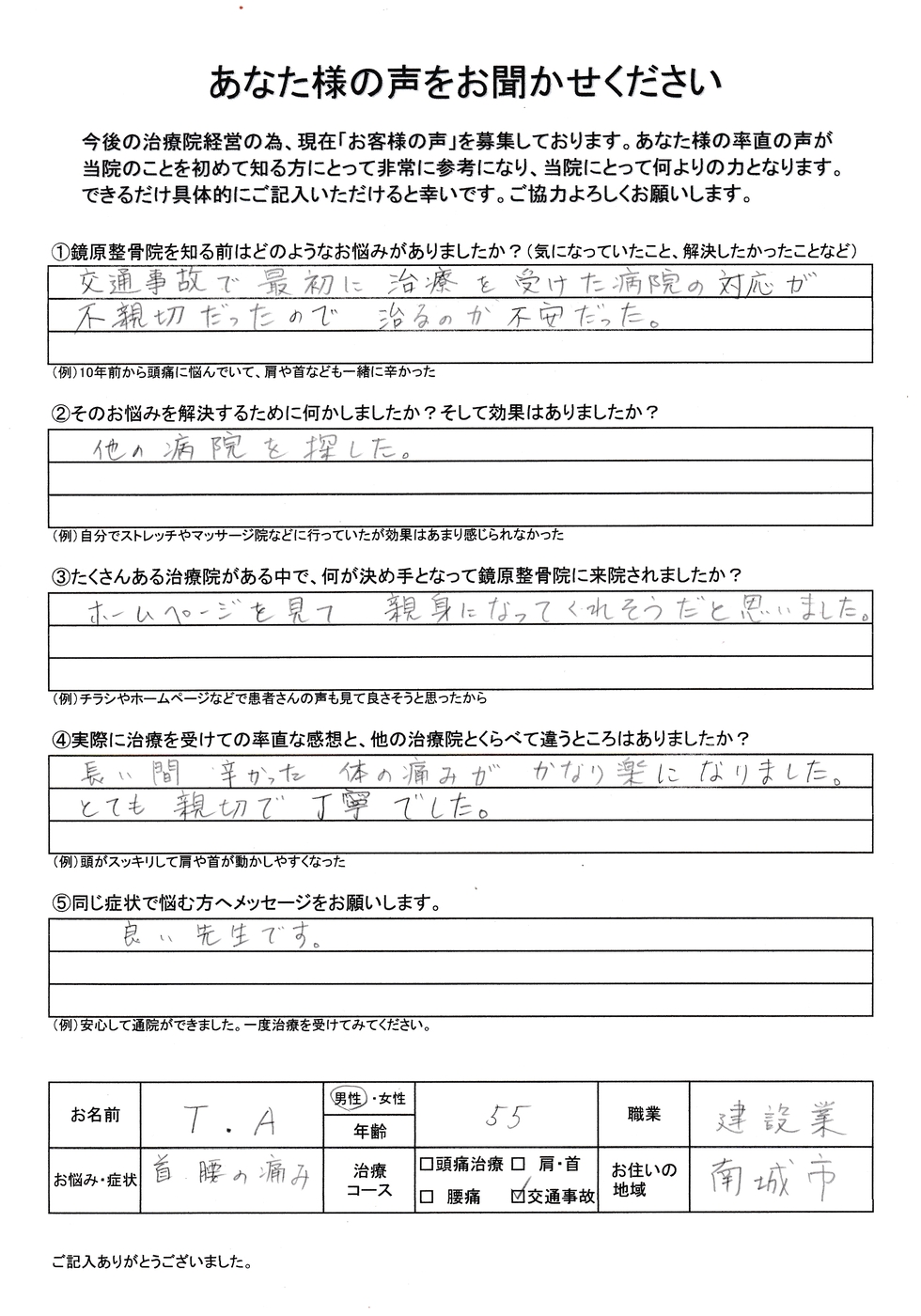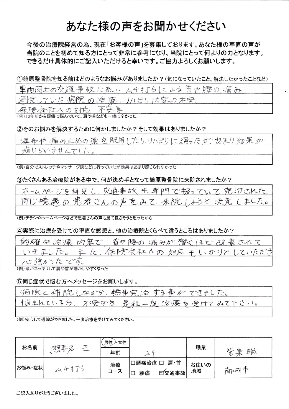 那覇市で交通事故治療・むち打ち患者様の声、口コミ件数No1の整骨院